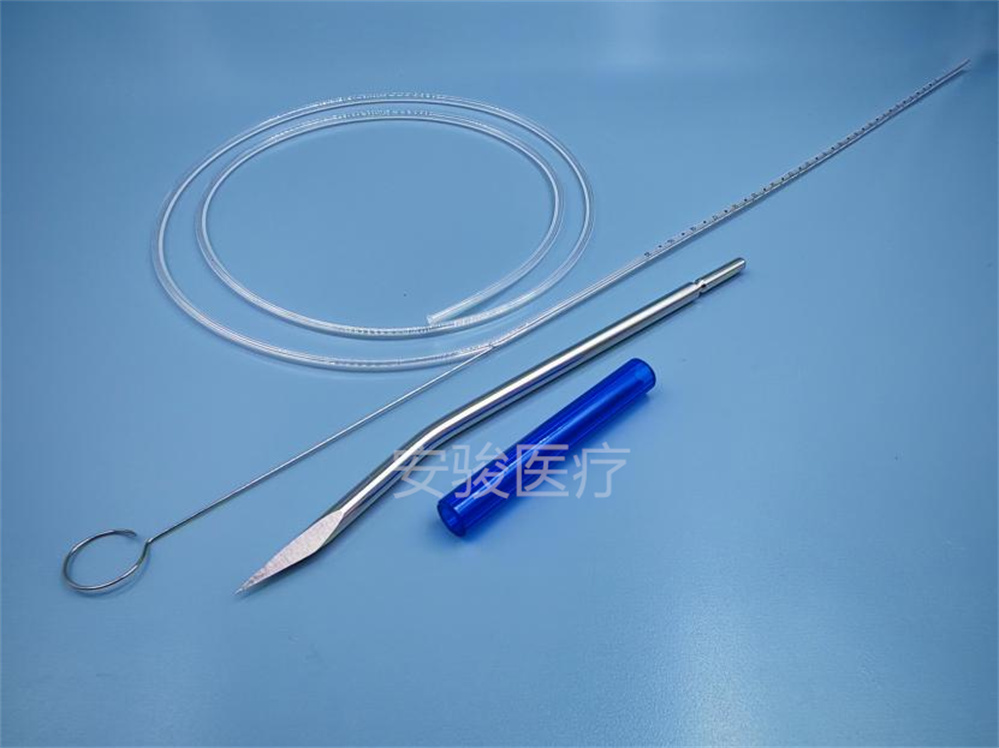 引流導管”以醫用TPU為原材料,頭端可X光顯影,管體外壁帶有圓形白色刻度標記線,以利于醫生準確判斷引流管進出的長度。流量調節器和三通接頭采用聚丙烯(PP/PC)樹脂制成。金屬導引絲采用06Cr19Ni10不銹鋼絲制成。導引針應采用06Cr19Ni10不銹鋼制成。